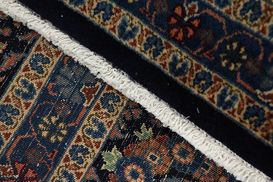 Abrash: Due to the different amount of grease in the wool and the added salt during the process of dyeing, the wool has got a varying colour absorbance. This is not very visible before weaving. During the weaving though, lines of the same colour are formed in the carpet. This is called Abrash (which in Farsi means little cloud) and it shows that the wool was not manufactured using chemical means and marks the naturalness and authenticity of the carpets. Examples