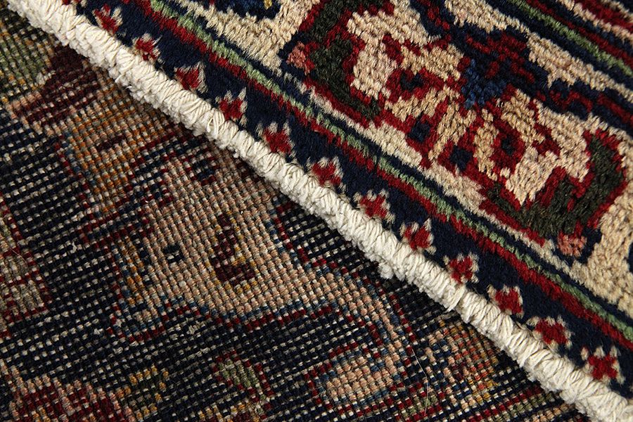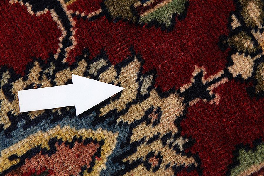 Abrash: Due to the different amount of grease in the wool and the added salt during the process of dyeing, the wool has got a varying colour absorbance. This is not very visible before weaving. During the weaving though, lines of the same colour are formed in the carpet. This is called Abrash (which in Farsi means little cloud) and it shows that the wool was not manufactured using chemical means and marks the naturalness and authenticity of the carpets. Examples