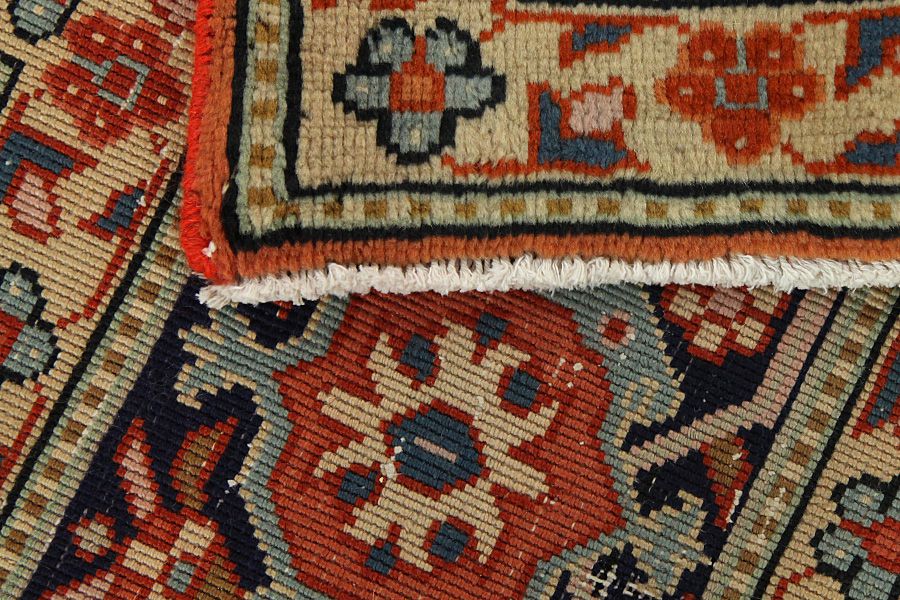 Abrash: Due to the different amount of grease in the wool and the added salt during the process of dyeing, the wool has got a varying colour absorbance. This is not very visible before weaving. During the weaving though, lines of the same colour are formed in the carpet. This is called Abrash (which in Farsi means little cloud) and it shows that the wool was not manufactured using chemical means and marks the naturalness and authenticity of the carpets. Examples