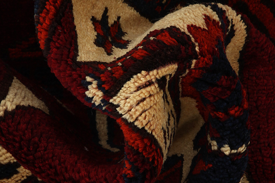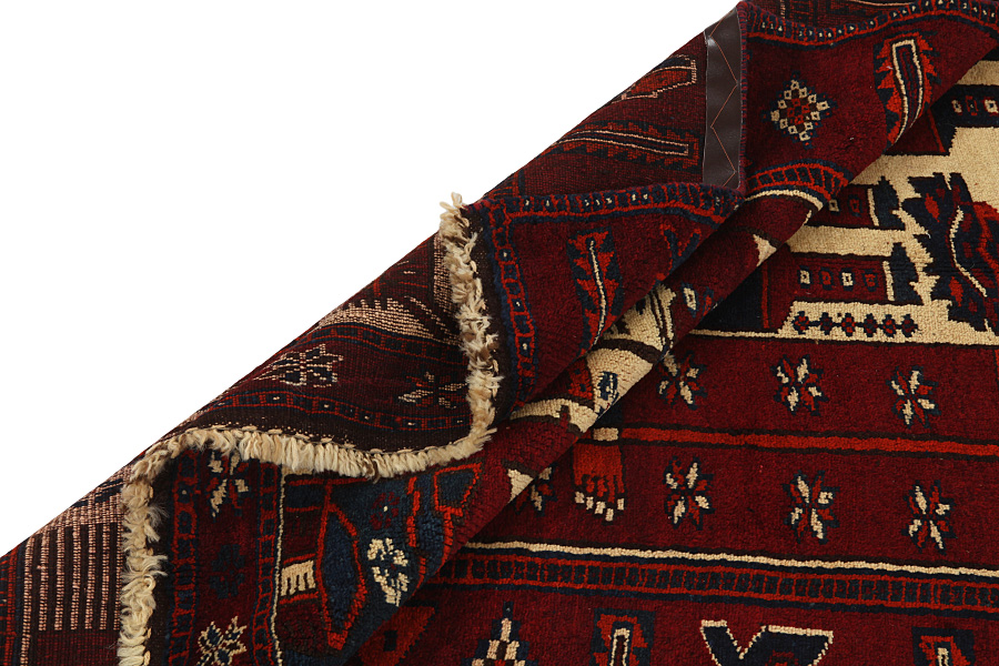 Qashqai Carpets : Qashqai carpets are woven by nomads who live in the mountainous areas of Southwest Persia, the provinces of Fars, Khuzestan, south of Isfahan and around the city Shiraz. Their carpets have a high knot density and a wide variety of designs, usually in deep red and blue colors. They weave carpets, Kilims and decorative textiles (ribbons, bags, etc.), which depict scenes from their lives with various representation of humans, animals, birds, trees and flowers. They also depict historical monuments, mostly from Persepolis.