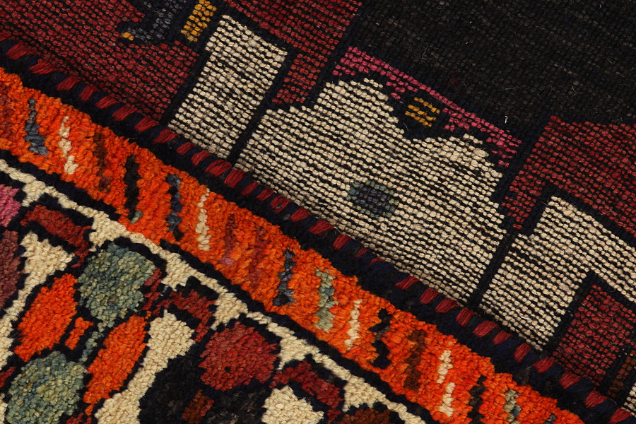 Qashqai Carpets : Qashqai carpets are woven by nomads who live in the mountainous areas of Southwest Persia, the provinces of Fars, Khuzestan, south of Isfahan and around the city Shiraz. Their carpets have a high knot density and a wide variety of designs, usually in deep red and blue colors. They weave carpets, Kilims and decorative textiles (ribbons, bags, etc.), which depict scenes from their lives with various representation of humans, animals, birds, trees and flowers. They also depict historical monuments, mostly from Persepolis.