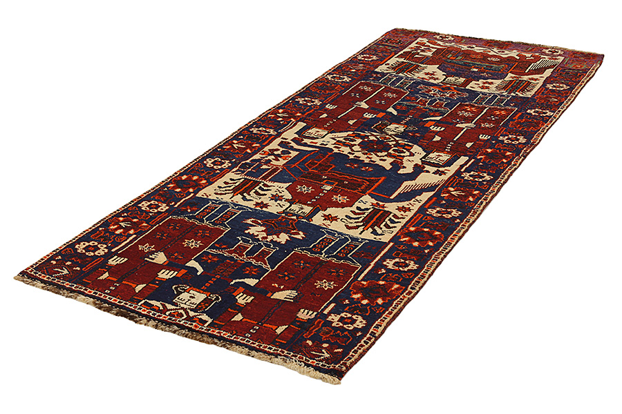 Bakhtiari Carpets : In the mountains Zagros, west of the city of Isfahan, around the town of Shahr-e-Kurd, live the nomads Bakhtiar. Their carpets are known for the design with various repeating squares in which flowers and animals are depicted. For this reason the design is called "garden"(Khesti). Their carpets are very durable with a dense weave and very good quality Persian wool coming from sheep grazing at a high altitude. The best Bakhtiar rugs and carpets with highest knot density are often called Bibibaff. Also in many designs we see influences from Isfahan carpets. (Boldaji - Feridan - Saman).