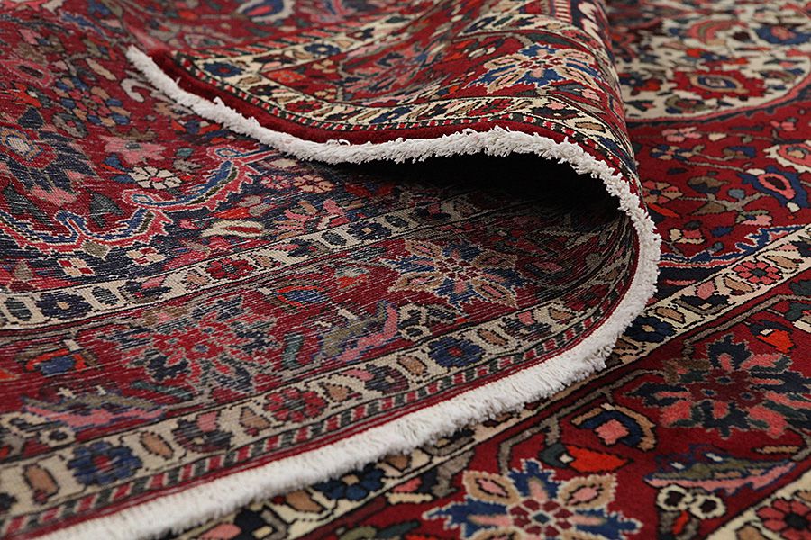 Abrash: Due to the different amount of grease in the wool and the added salt during the process of dyeing, the wool has got a varying colour absorbance. This is not very visible before weaving. During the weaving though, lines of the same colour are formed in the carpet. This is called Abrash (which in Farsi means little cloud) and it shows that the wool was not manufactured using chemical means and marks the naturalness and authenticity of the carpets. Examples