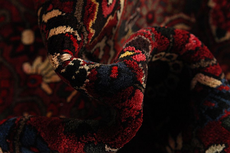 Abrash: Due to the different amount of grease in the wool and the added salt during the process of dyeing, the wool has got a varying colour absorbance. This is not very visible before weaving. During the weaving though, lines of the same colour are formed in the carpet. This is called Abrash (which in Farsi means little cloud) and it shows that the wool was not manufactured using chemical means and marks the naturalness and authenticity of the carpets. Examples