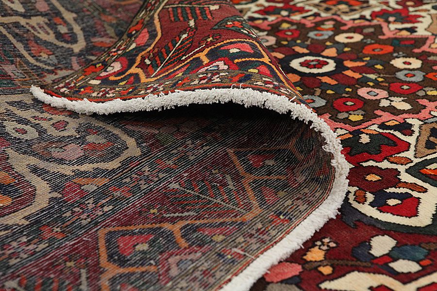 Bakhtiari Carpets : In the mountains Zagros, west of the city of Isfahan, around the town of Shahr-e-Kurd, live the nomads Bakhtiar. Their carpets are known for the design with various repeating squares in which flowers and animals are depicted. For this reason the design is called "garden"(Khesti). Their carpets are very durable with a dense weave and very good quality Persian wool coming from sheep grazing at a high altitude. The best Bakhtiar rugs and carpets with highest knot density are often called Bibibaff. Also in many designs we see influences from Isfahan carpets. (Boldaji - Feridan - Saman).