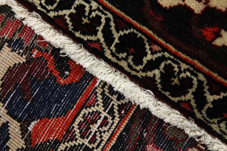 Abrash: Due to the different amount of grease in the wool and the added salt during the process of dyeing, the wool has got a varying colour absorbance. This is not very visible before weaving. During the weaving though, lines of the same colour are formed in the carpet. This is called Abrash (which in Farsi means little cloud) and it shows that the wool was not manufactured using chemical means and marks the naturalness and authenticity of the carpets. Examples