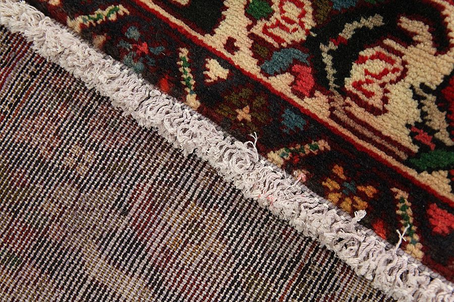Abrash: Due to the different amount of grease in the wool and the added salt during the process of dyeing, the wool has got a varying colour absorbance. This is not very visible before weaving. During the weaving though, lines of the same colour are formed in the carpet. This is called Abrash (which in Farsi means little cloud) and it shows that the wool was not manufactured using chemical means and marks the naturalness and authenticity of the carpets. Examples