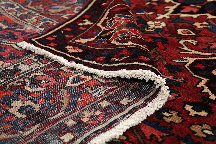 Abrash: Due to the different amount of grease in the wool and the added salt during the process of dyeing, the wool has got a varying colour absorbance. This is not very visible before weaving. During the weaving though, lines of the same colour are formed in the carpet. This is called Abrash (which in Farsi means little cloud) and it shows that the wool was not manufactured using chemical means and marks the naturalness and authenticity of the carpets. Examples