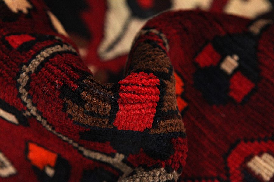 Abrash: Due to the different amount of grease in the wool and the added salt during the process of dyeing, the wool has got a varying colour absorbance. This is not very visible before weaving. During the weaving though, lines of the same colour are formed in the carpet. This is called Abrash (which in Farsi means little cloud) and it shows that the wool was not manufactured using chemical means and marks the naturalness and authenticity of the carpets. Examples
