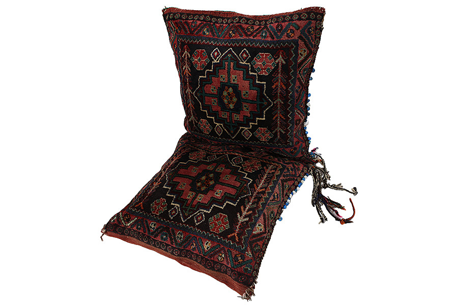 Saddle Bag Carpets : ​Horse saddle bags are made by Nomads for their own use. One can distinguish between the kilim-horse saddle bags and the knotted horse saddle bags. The front side of a knotted horse saddle bag is either knotted like a common carpet with knots or different mixed techniques are used. The side parts are often woven whereas in the middle part different weaving techniques such as kelim or Soumak are applied. The colors horse bags are dyed with are all natural and made by the Nomads themselves. Bags like these once carried everyday necessities for travelers on donkeys or horses. A delightful piece of art that provides a unique oriental atmosphere to your home. Horse saddle bags can be used as a seat cushion, as a floor cushion eg in front of your fireplace or as a wall decoration. Smaller horse saddle bags can be used as a newspaper holder to store newspapers or magazines when slung over a chair or sofa.