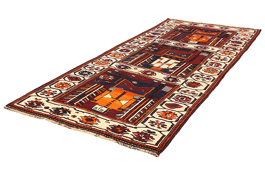 Bakhtiari Carpets : In the mountains Zagros, west of the city of Isfahan, around the town of Shahr-e-Kurd, live the nomads Bakhtiar. Their carpets are known for the design with various repeating squares in which flowers and animals are depicted. For this reason the design is called "garden"(Khesti). Their carpets are very durable with a dense weave and very good quality Persian wool coming from sheep grazing at a high altitude. The best Bakhtiar rugs and carpets with highest knot density are often called Bibibaff. Also in many designs we see influences from Isfahan carpets. (Boldaji - Feridan - Saman).