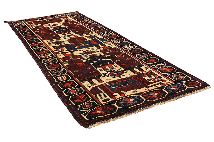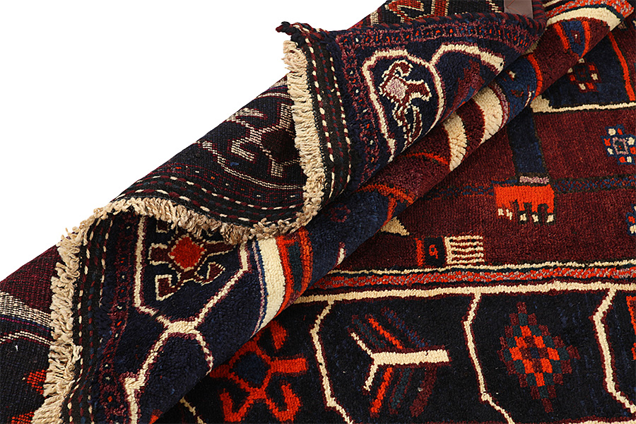 Qashqai Carpets : Qashqai carpets are woven by nomads who live in the mountainous areas of Southwest Persia, the provinces of Fars, Khuzestan, south of Isfahan and around the city Shiraz. Their carpets have a high knot density and a wide variety of designs, usually in deep red and blue colors. They weave carpets, Kilims and decorative textiles (ribbons, bags, etc.), which depict scenes from their lives with various representation of humans, animals, birds, trees and flowers. They also depict historical monuments, mostly from Persepolis.