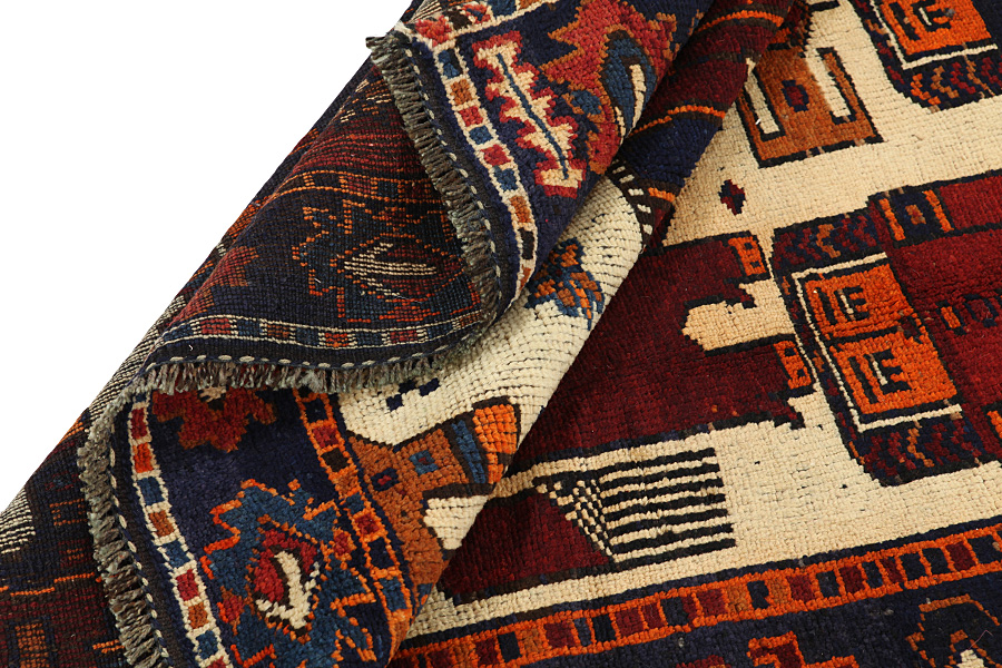 Qashqai Carpets : Qashqai carpets are woven by nomads who live in the mountainous areas of Southwest Persia, the provinces of Fars, Khuzestan, south of Isfahan and around the city Shiraz. Their carpets have a high knot density and a wide variety of designs, usually in deep red and blue colors. They weave carpets, Kilims and decorative textiles (ribbons, bags, etc.), which depict scenes from their lives with various representation of humans, animals, birds, trees and flowers. They also depict historical monuments, mostly from Persepolis.