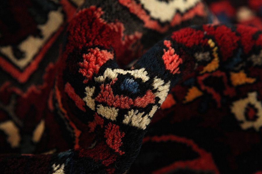 Abrash: Due to the different amount of grease in the wool and the added salt during the process of dyeing, the wool has got a varying colour absorbance. This is not very visible before weaving. During the weaving though, lines of the same colour are formed in the carpet. This is called Abrash (which in Farsi means little cloud) and it shows that the wool was not manufactured using chemical means and marks the naturalness and authenticity of the carpets. Examples