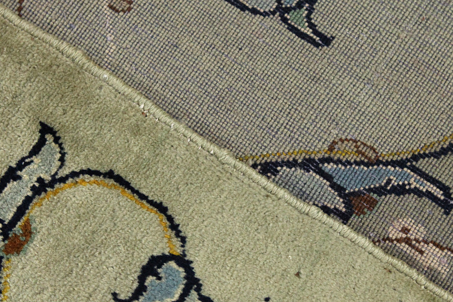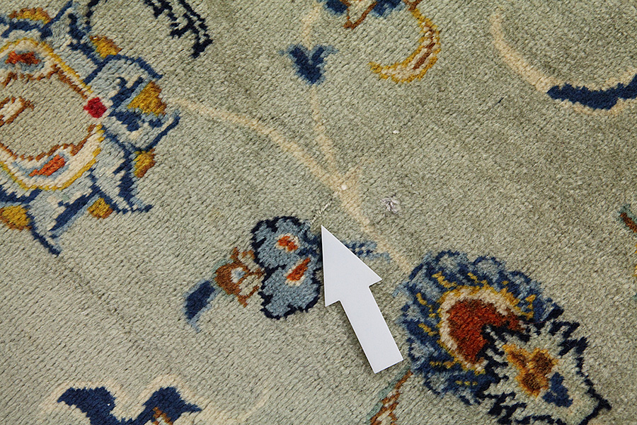 Abrash: Due to the different amount of grease in the wool and the added salt during the process of dyeing, the wool has got a varying colour absorbance. This is not very visible before weaving. During the weaving though, lines of the same colour are formed in the carpet. This is called Abrash (which in Farsi means little cloud) and it shows that the wool was not manufactured using chemical means and marks the naturalness and authenticity of the carpets. Examples