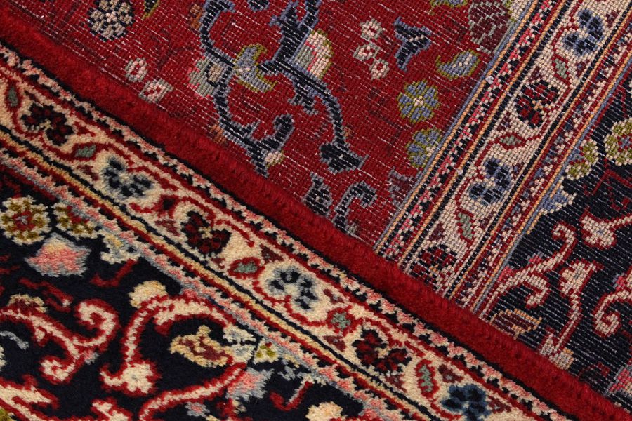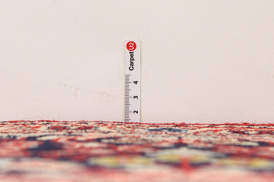 Abrash: Due to the different amount of grease in the wool and the added salt during the process of dyeing, the wool has got a varying colour absorbance. This is not very visible before weaving. During the weaving though, lines of the same colour are formed in the carpet. This is called Abrash (which in Farsi means little cloud) and it shows that the wool was not manufactured using chemical means and marks the naturalness and authenticity of the carpets. Examples