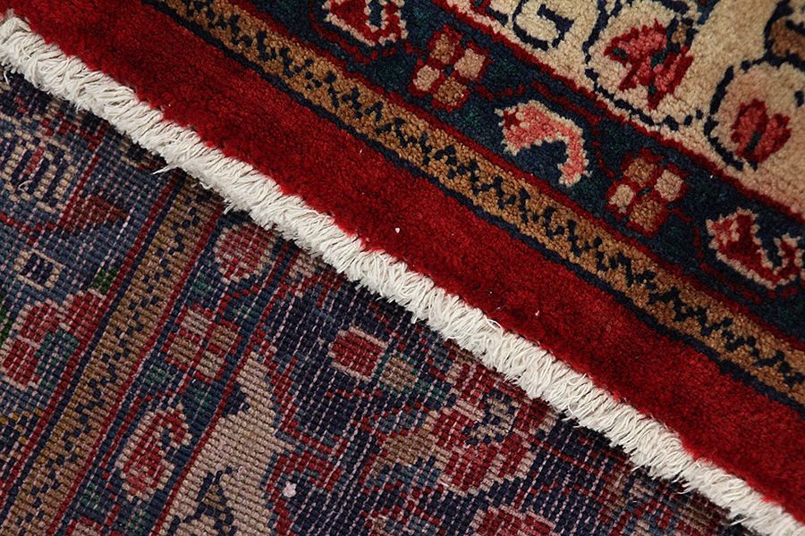 Abrash: Due to the different amount of grease in the wool and the added salt during the process of dyeing, the wool has got a varying colour absorbance. This is not very visible before weaving. During the weaving though, lines of the same colour are formed in the carpet. This is called Abrash (which in Farsi means little cloud) and it shows that the wool was not manufactured using chemical means and marks the naturalness and authenticity of the carpets. Examples