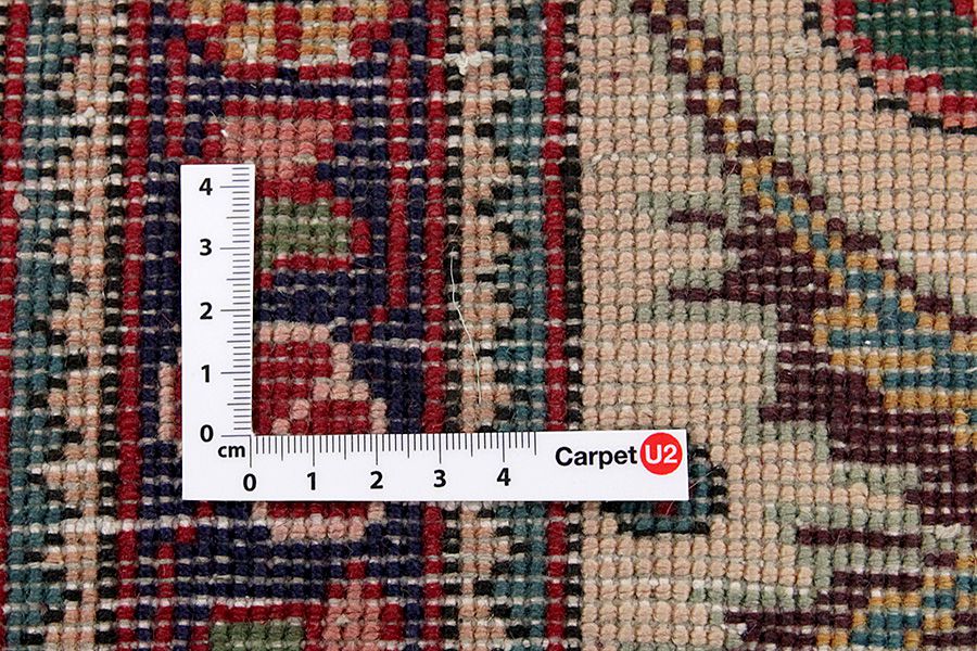 Abrash: Due to the different amount of grease in the wool and the added salt during the process of dyeing, the wool has got a varying colour absorbance. This is not very visible before weaving. During the weaving though, lines of the same colour are formed in the carpet. This is called Abrash (which in Farsi means little cloud) and it shows that the wool was not manufactured using chemical means and marks the naturalness and authenticity of the carpets. Examples