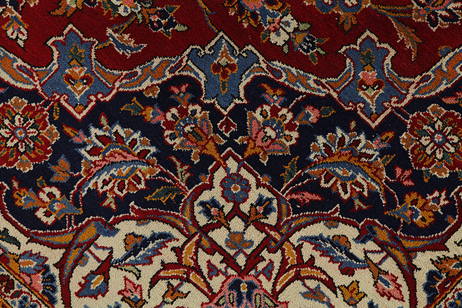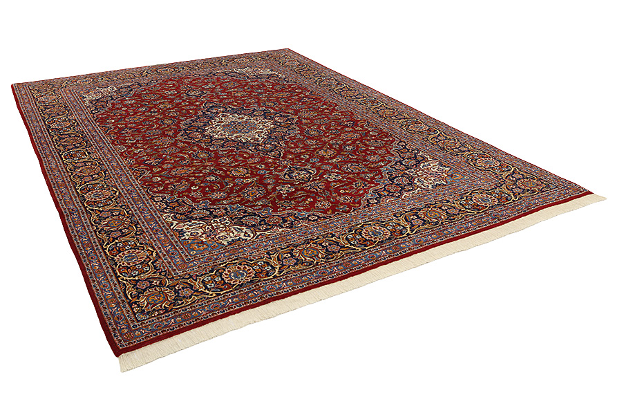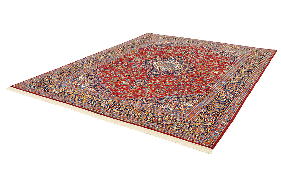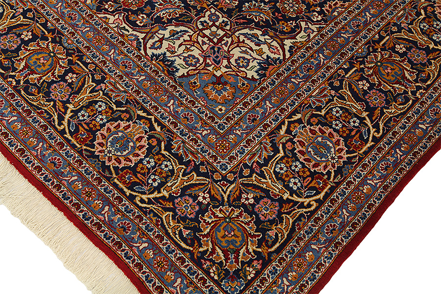 Kashan Carpets : Between Isfahan and Tehran, near the Dast-e-Kavir desert is the city of Kashan. The city is known for its handmade carpets, textiles and ceramics. The city where many commercial transactions take place is important as it is a resting place along the Silk Road. The famous Ardebil carpet that is found in the Victoria and Albert Museum is thought to have been woven in Kashan in the 16th century. Since 1800 began the organized production of handmade carpets from very renowned weavers in Kashan. The Kashan rugs gained a solid reputation and their success is due to three factors: the great variety of beautiful designs with fine colors, the soft shiny wool that gives a smooth surface to the carpets and the fact that many weavers come from nearby Isfahan who are capable and renowned carpet artisans.