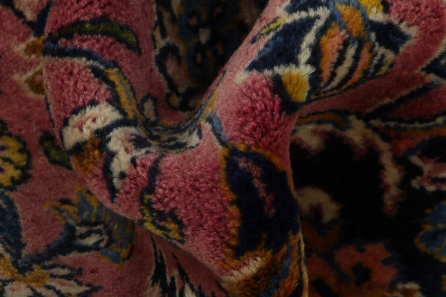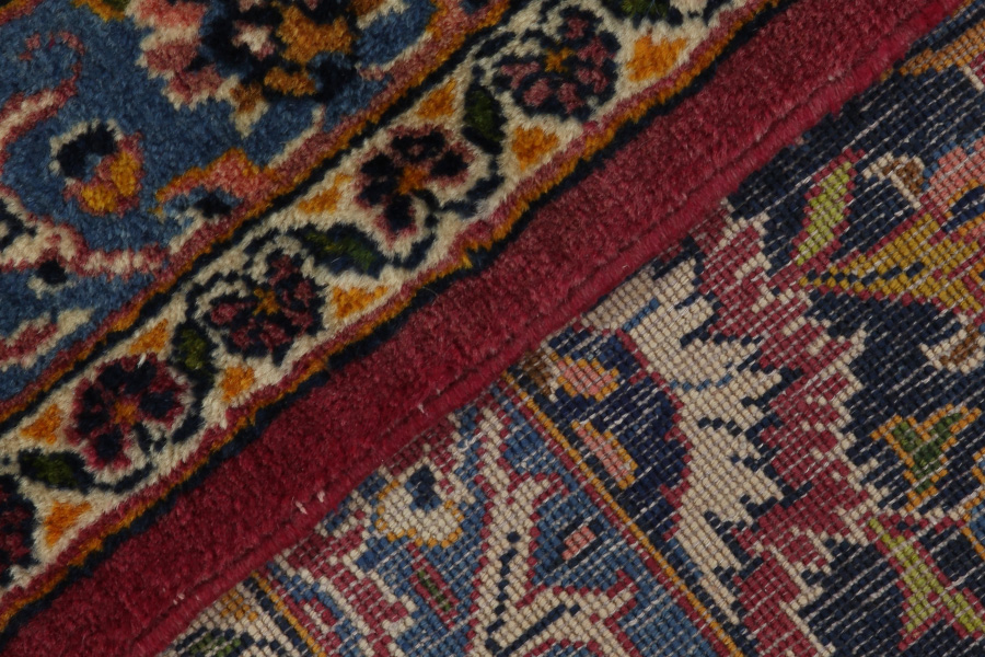 Abrash: Due to the different amount of grease in the wool and the added salt during the process of dyeing, the wool has got a varying colour absorbance. This is not very visible before weaving. During the weaving though, lines of the same colour are formed in the carpet. This is called Abrash (which in Farsi means little cloud) and it shows that the wool was not manufactured using chemical means and marks the naturalness and authenticity of the carpets. Examples