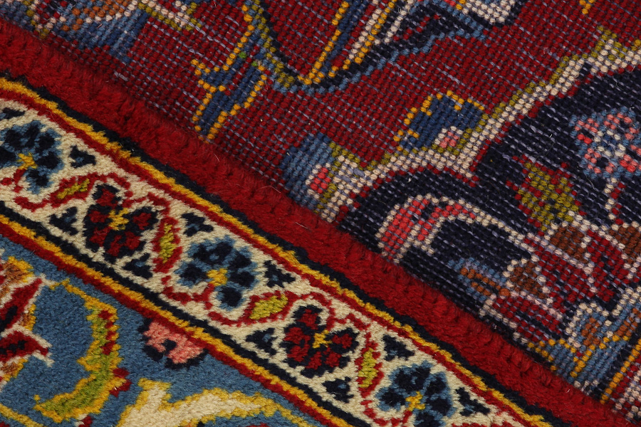 Abrash: Due to the different amount of grease in the wool and the added salt during the process of dyeing, the wool has got a varying colour absorbance. This is not very visible before weaving. During the weaving though, lines of the same colour are formed in the carpet. This is called Abrash (which in Farsi means little cloud) and it shows that the wool was not manufactured using chemical means and marks the naturalness and authenticity of the carpets. Examples