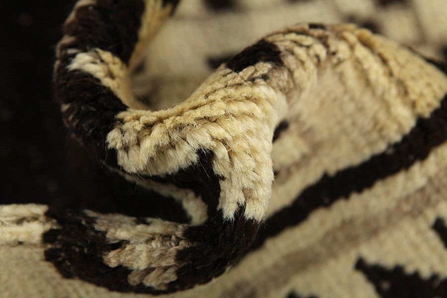 Abrash: Due to the different amount of grease in the wool and the added salt during the process of dyeing, the wool has got a varying colour absorbance. This is not very visible before weaving. During the weaving though, lines of the same colour are formed in the carpet. This is called Abrash (which in Farsi means little cloud) and it shows that the wool was not manufactured using chemical means and marks the naturalness and authenticity of the carpets. Examples