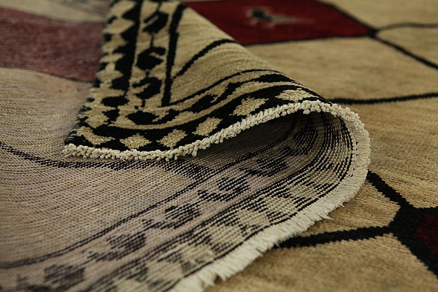 Gabbeh Carpets : Gabbeh in Farsi means natural, primitive. Carpets and textiles with this name are woven by the nomads Qashqai who roam about, or in villages in Southwestern Iran where they live. The yarns are processed and twisted by hand, painted with herbal colors and woven with a wool warp up to 2 cm thick. These carpets are simple, with few designs, or monochrome. The simple, linear designs with animals and human figures give them a contemporary look. Various names are given to Gabbeh carpets such as Basic, Amalehbaft, Kashkooli, Luribaft and Sumak. Gabbeh Kashkooli is a carpet with high knot density and thinner than ordinary Persian Gabbeh carpets. The Persian Gabbeh is very durable and its quality is very good.