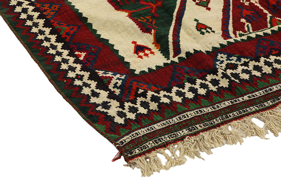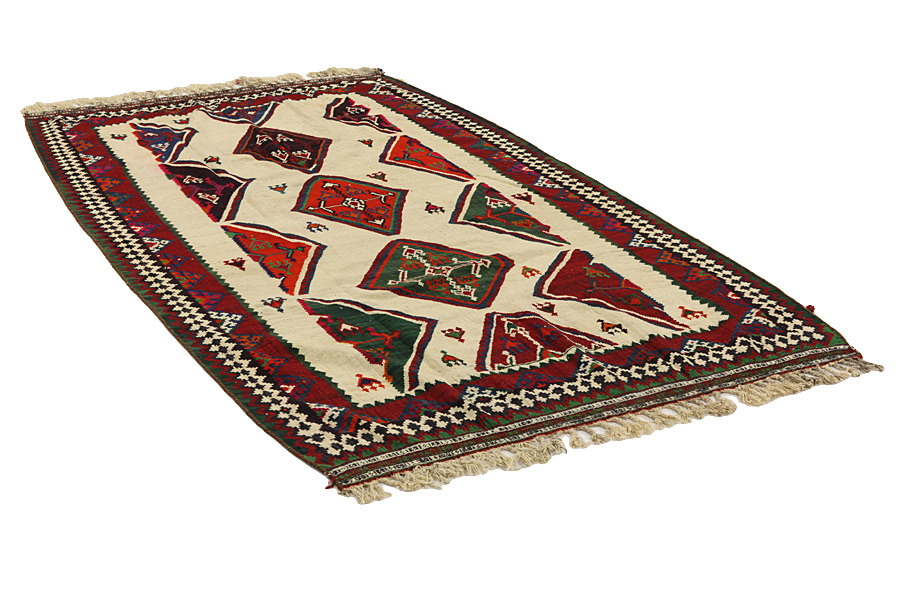 : This is a particular type of Oriental flat woven rug without a pile (which preceded the pile carpet) and is manufactured mainly by nomads in Persia, Afghanistan, Turkey and in various regions of the Caucasus. These textiles are rather small with a plain weave and no pile and they have got geometric patterns and rich colors. In order to weave them, natural materials like wool are used and sometimes silk for lightweight and delicate carpets. The coloring of yarns is done with plants and minerals that contribute to natural, beautiful colors. The long history of Kilim rugs goes back centuries to the nomads of Central Asia. Initially the carpets were mainly used in households and much later became commercial products, following the bloom of the oriental carpeting during the 16th and 17th century. They have many applications and can be used on the floor, as toppings or for decorating walls. The name Kilim is derived from the Persian word gelim. The most famous Persian carpets are Sumakh, Senneh, Fars and Qashqai. Many Kilims are also woven at the border between Persia and Afghanistan by the nomads of Balouch with dark earthy indicative colors.