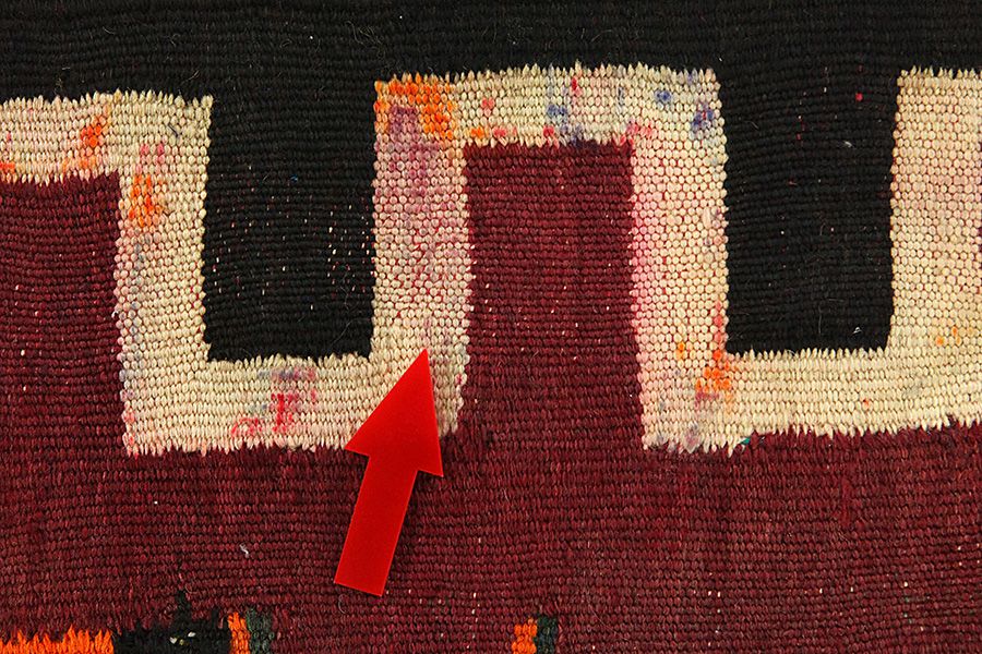 Abrash: Due to the different amount of grease in the wool and the added salt during the process of dyeing, the wool has got a varying colour absorbance. This is not very visible before weaving. During the weaving though, lines of the same colour are formed in the carpet. This is called Abrash (which in Farsi means little cloud) and it shows that the wool was not manufactured using chemical means and marks the naturalness and authenticity of the carpets. Examples