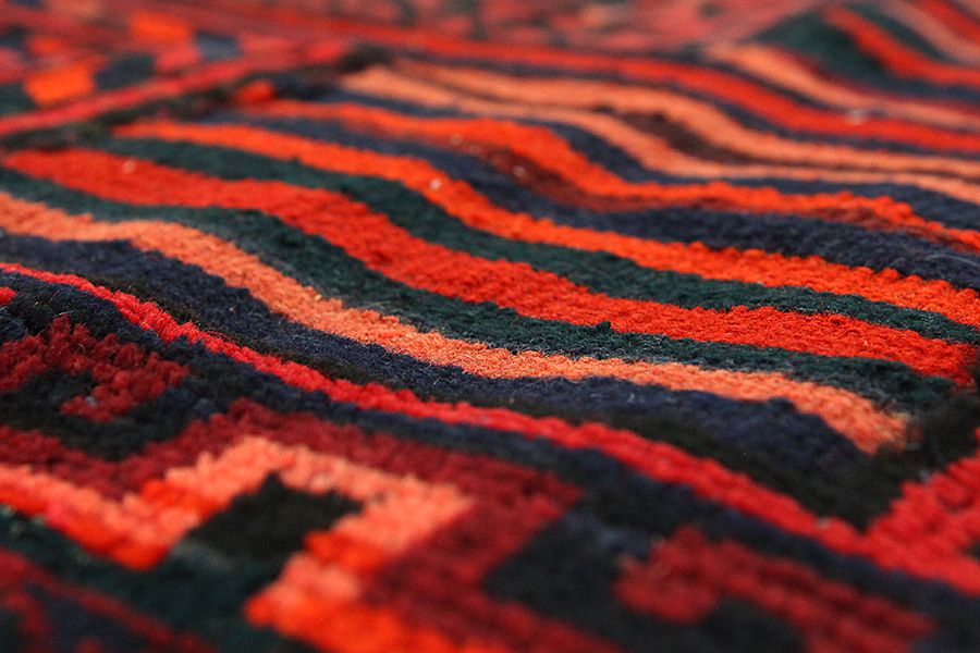 Abrash: Due to the different amount of grease in the wool and the added salt during the process of dyeing, the wool has got a varying colour absorbance. This is not very visible before weaving. During the weaving though, lines of the same colour are formed in the carpet. This is called Abrash (which in Farsi means little cloud) and it shows that the wool was not manufactured using chemical means and marks the naturalness and authenticity of the carpets. Examples