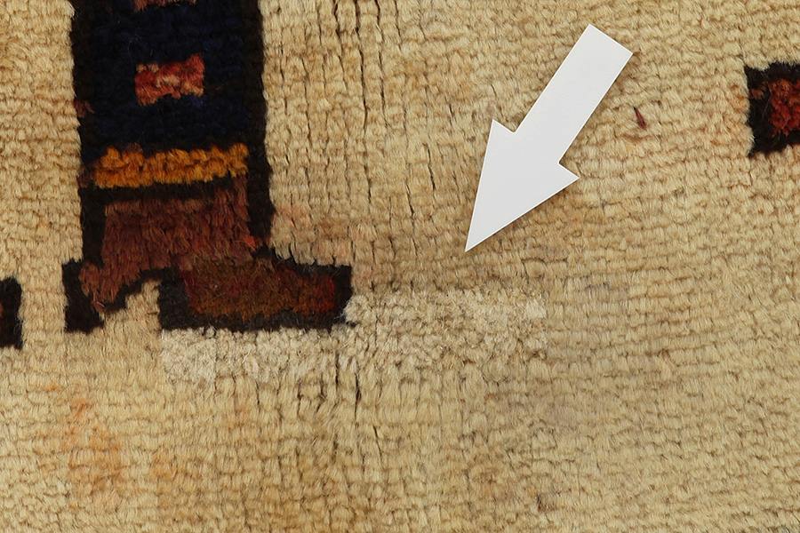 Abrash: Due to the different amount of grease in the wool and the added salt during the process of dyeing, the wool has got a varying colour absorbance. This is not very visible before weaving. During the weaving though, lines of the same colour are formed in the carpet. This is called Abrash (which in Farsi means little cloud) and it shows that the wool was not manufactured using chemical means and marks the naturalness and authenticity of the carpets. Examples