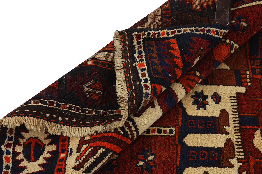 Qashqai Carpets : Qashqai carpets are woven by nomads who live in the mountainous areas of Southwest Persia, the provinces of Fars, Khuzestan, south of Isfahan and around the city Shiraz. Their carpets have a high knot density and a wide variety of designs, usually in deep red and blue colors. They weave carpets, Kilims and decorative textiles (ribbons, bags, etc.), which depict scenes from their lives with various representation of humans, animals, birds, trees and flowers. They also depict historical monuments, mostly from Persepolis.