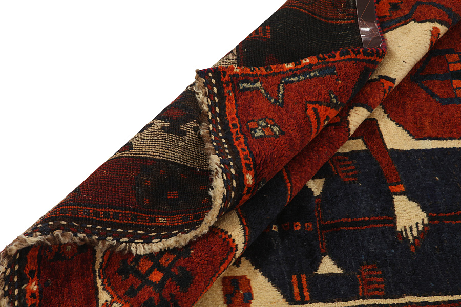 Qashqai Carpets : Qashqai carpets are woven by nomads who live in the mountainous areas of Southwest Persia, the provinces of Fars, Khuzestan, south of Isfahan and around the city Shiraz. Their carpets have a high knot density and a wide variety of designs, usually in deep red and blue colors. They weave carpets, Kilims and decorative textiles (ribbons, bags, etc.), which depict scenes from their lives with various representation of humans, animals, birds, trees and flowers. They also depict historical monuments, mostly from Persepolis.