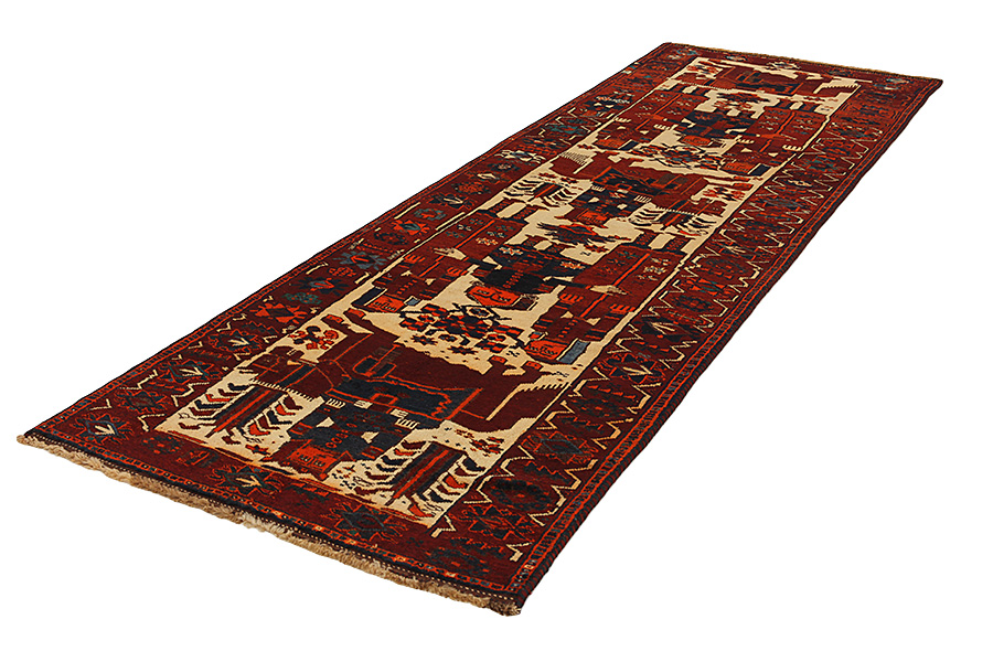 Qashqai Carpets : Qashqai carpets are woven by nomads who live in the mountainous areas of Southwest Persia, the provinces of Fars, Khuzestan, south of Isfahan and around the city Shiraz. Their carpets have a high knot density and a wide variety of designs, usually in deep red and blue colors. They weave carpets, Kilims and decorative textiles (ribbons, bags, etc.), which depict scenes from their lives with various representation of humans, animals, birds, trees and flowers. They also depict historical monuments, mostly from Persepolis.