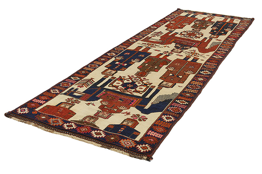 Qashqai Carpets : Qashqai carpets are woven by nomads who live in the mountainous areas of Southwest Persia, the provinces of Fars, Khuzestan, south of Isfahan and around the city Shiraz. Their carpets have a high knot density and a wide variety of designs, usually in deep red and blue colors. They weave carpets, Kilims and decorative textiles (ribbons, bags, etc.), which depict scenes from their lives with various representation of humans, animals, birds, trees and flowers. They also depict historical monuments, mostly from Persepolis.