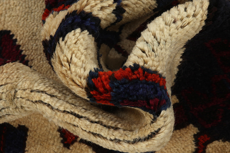 Abrash: Due to the different amount of grease in the wool and the added salt during the process of dyeing, the wool has got a varying colour absorbance. This is not very visible before weaving. During the weaving though, lines of the same colour are formed in the carpet. This is called Abrash (which in Farsi means little cloud) and it shows that the wool was not manufactured using chemical means and marks the naturalness and authenticity of the carpets. Examples