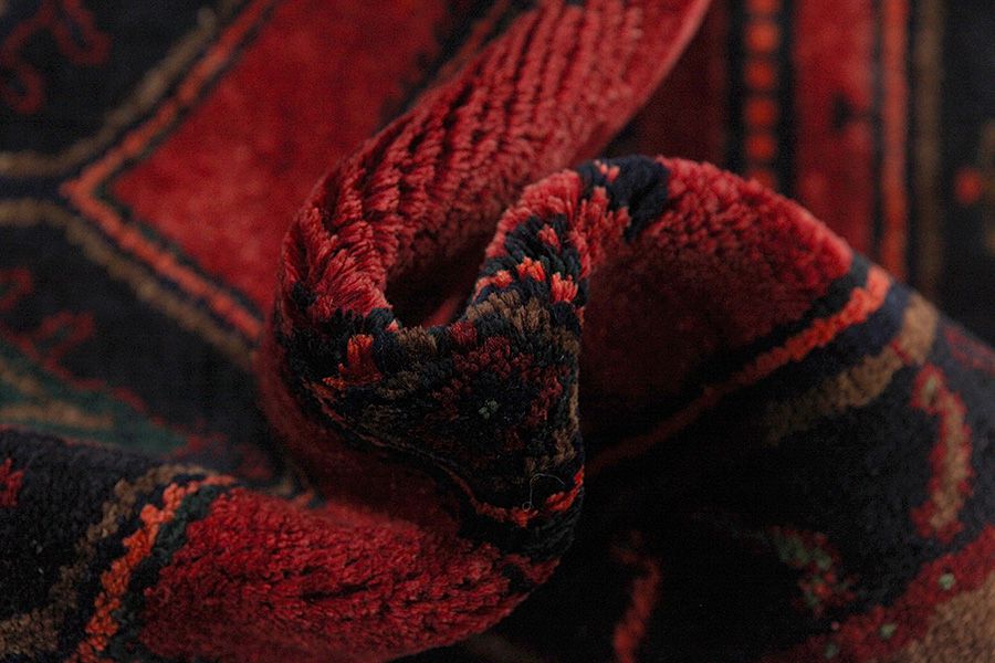 Abrash: Due to the different amount of grease in the wool and the added salt during the process of dyeing, the wool has got a varying colour absorbance. This is not very visible before weaving. During the weaving though, lines of the same colour are formed in the carpet. This is called Abrash (which in Farsi means little cloud) and it shows that the wool was not manufactured using chemical means and marks the naturalness and authenticity of the carpets. Examples