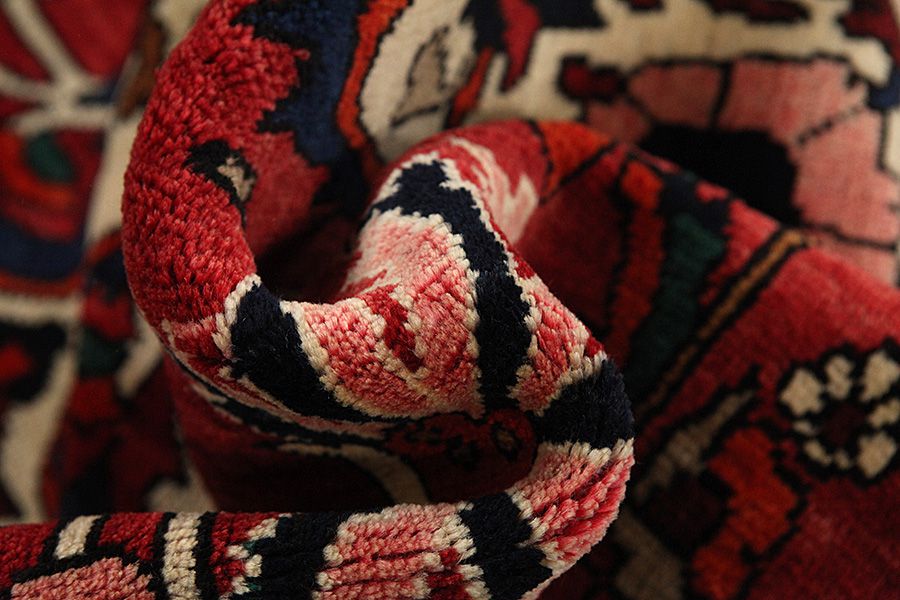 Abrash: Due to the different amount of grease in the wool and the added salt during the process of dyeing, the wool has got a varying colour absorbance. This is not very visible before weaving. During the weaving though, lines of the same colour are formed in the carpet. This is called Abrash (which in Farsi means little cloud) and it shows that the wool was not manufactured using chemical means and marks the naturalness and authenticity of the carpets. Examples