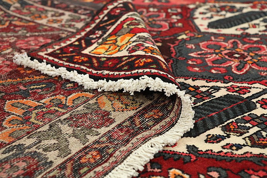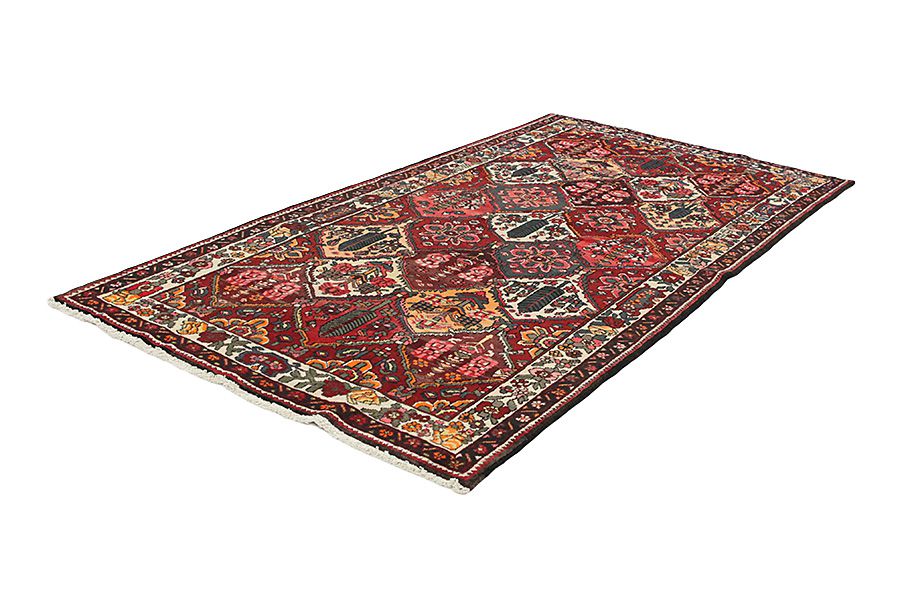 Bakhtiari Carpets : In the mountains Zagros, west of the city of Isfahan, around the town of Shahr-e-Kurd, live the nomads Bakhtiar. Their carpets are known for the design with various repeating squares in which flowers and animals are depicted. For this reason the design is called "garden"(Khesti). Their carpets are very durable with a dense weave and very good quality Persian wool coming from sheep grazing at a high altitude. The best Bakhtiar rugs and carpets with highest knot density are often called Bibibaff. Also in many designs we see influences from Isfahan carpets. (Boldaji - Feridan - Saman).