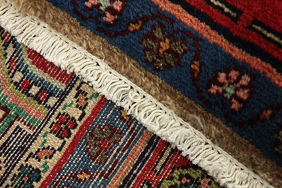 Abrash: Due to the different amount of grease in the wool and the added salt during the process of dyeing, the wool has got a varying colour absorbance. This is not very visible before weaving. During the weaving though, lines of the same colour are formed in the carpet. This is called Abrash (which in Farsi means little cloud) and it shows that the wool was not manufactured using chemical means and marks the naturalness and authenticity of the carpets. Examples