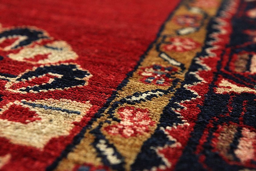 Abrash: Due to the different amount of grease in the wool and the added salt during the process of dyeing, the wool has got a varying colour absorbance. This is not very visible before weaving. During the weaving though, lines of the same colour are formed in the carpet. This is called Abrash (which in Farsi means little cloud) and it shows that the wool was not manufactured using chemical means and marks the naturalness and authenticity of the carpets. Examples
