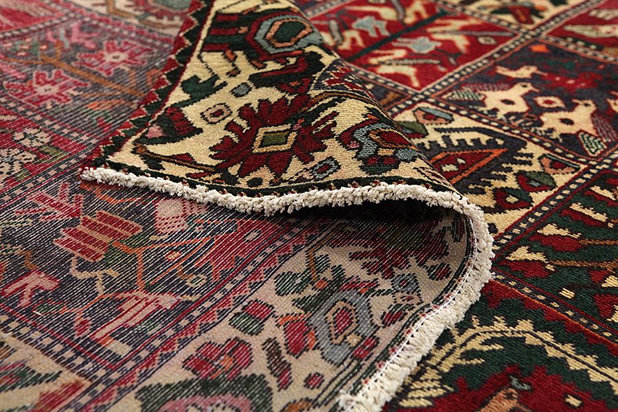 Bakhtiari Carpets : In the mountains Zagros, west of the city of Isfahan, around the town of Shahr-e-Kurd, live the nomads Bakhtiar. Their carpets are known for the design with various repeating squares in which flowers and animals are depicted. For this reason the design is called "garden"(Khesti). Their carpets are very durable with a dense weave and very good quality Persian wool coming from sheep grazing at a high altitude. The best Bakhtiar rugs and carpets with highest knot density are often called Bibibaff. Also in many designs we see influences from Isfahan carpets. (Boldaji - Feridan - Saman).