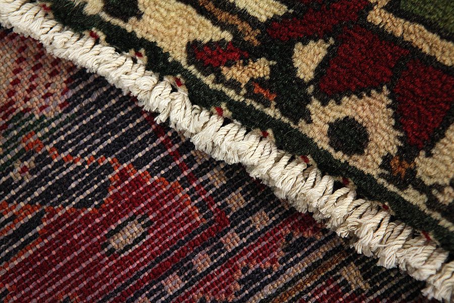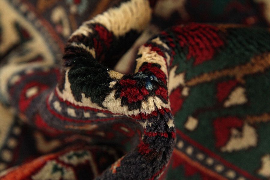 Abrash: Due to the different amount of grease in the wool and the added salt during the process of dyeing, the wool has got a varying colour absorbance. This is not very visible before weaving. During the weaving though, lines of the same colour are formed in the carpet. This is called Abrash (which in Farsi means little cloud) and it shows that the wool was not manufactured using chemical means and marks the naturalness and authenticity of the carpets. Examples