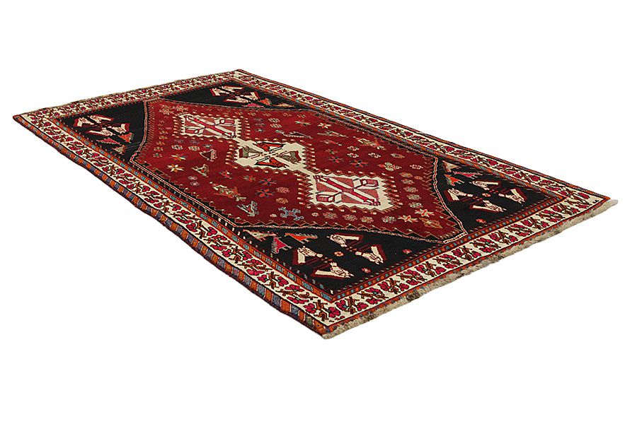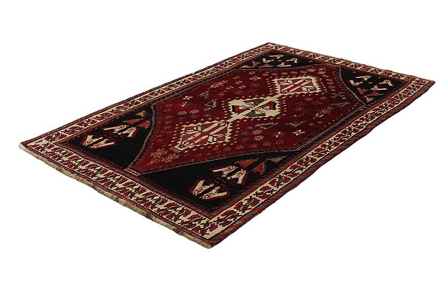 Qashqai Carpets : Qashqai carpets are woven by nomads who live in the mountainous areas of Southwest Persia, the provinces of Fars, Khuzestan, south of Isfahan and around the city Shiraz. Their carpets have a high knot density and a wide variety of designs, usually in deep red and blue colors. They weave carpets, Kilims and decorative textiles (ribbons, bags, etc.), which depict scenes from their lives with various representation of humans, animals, birds, trees and flowers. They also depict historical monuments, mostly from Persepolis.