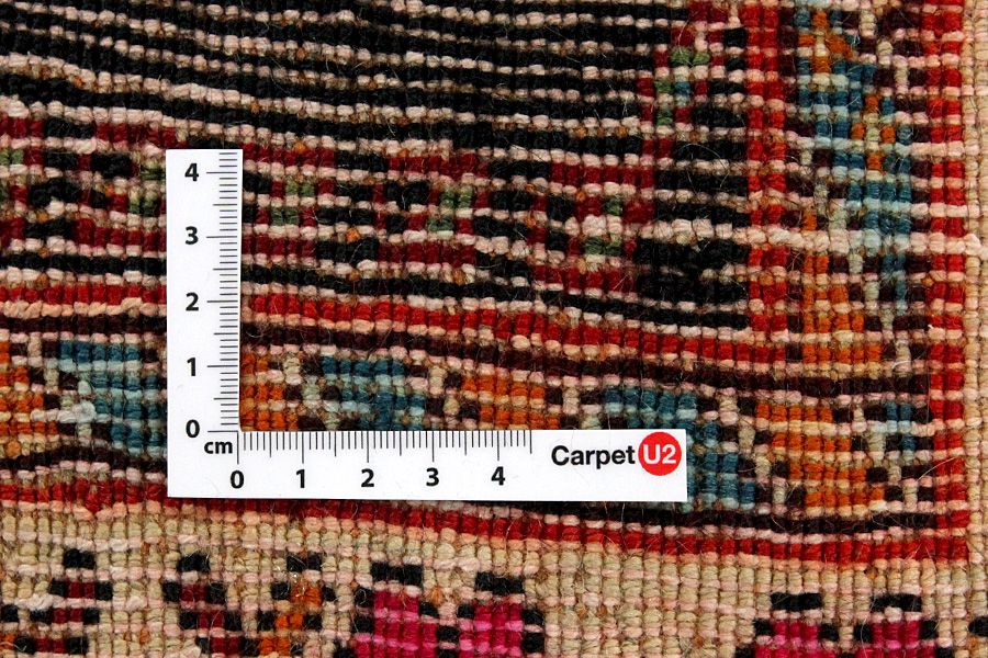 Abrash: Due to the different amount of grease in the wool and the added salt during the process of dyeing, the wool has got a varying colour absorbance. This is not very visible before weaving. During the weaving though, lines of the same colour are formed in the carpet. This is called Abrash (which in Farsi means little cloud) and it shows that the wool was not manufactured using chemical means and marks the naturalness and authenticity of the carpets. Examples
