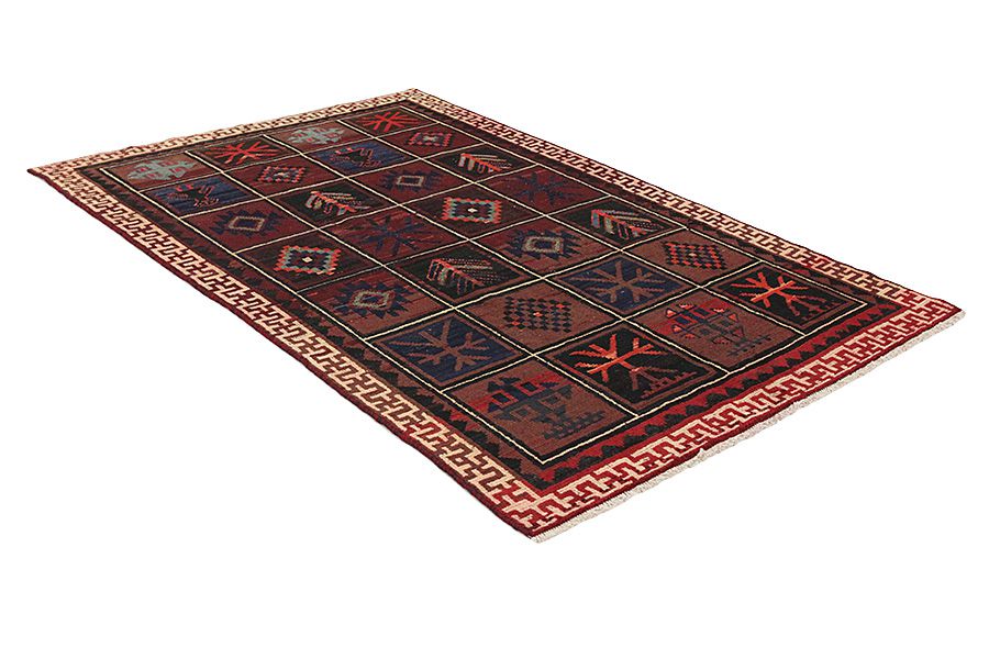 Bakhtiari Carpets : In the mountains Zagros, west of the city of Isfahan, around the town of Shahr-e-Kurd, live the nomads Bakhtiar. Their carpets are known for the design with various repeating squares in which flowers and animals are depicted. For this reason the design is called "garden"(Khesti). Their carpets are very durable with a dense weave and very good quality Persian wool coming from sheep grazing at a high altitude. The best Bakhtiar rugs and carpets with highest knot density are often called Bibibaff. Also in many designs we see influences from Isfahan carpets. (Boldaji - Feridan - Saman).
