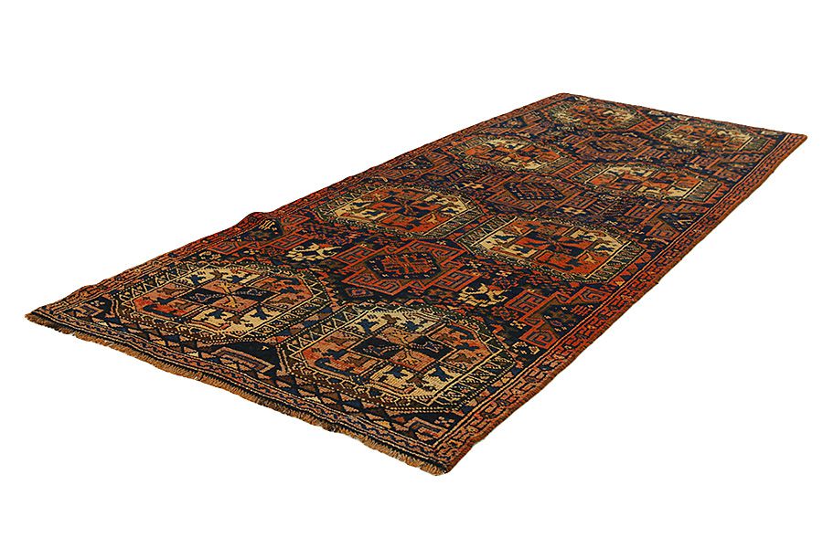 Bokhara Carpets : The Bokhara carpets are woven in Belutchistan and in different regions of Uzbekistan, Turkmenistan and Afghanistan. Turkmen carpets include Basjir, Salor, Tekke-Bochara, Jolam-Bocharaband, Ersari, Tjaudor and Yomut which are examples of the carpet style called Bokhara. Some areas of Turkmenistan where carpets are woven are Ashkabad, Bakharden, Geok-Tepe, Kizyl-Arvat and Merv. The deep red and the whole range of red from purple to brown are the dominant colors with repeating octagons, rhombi, yomut motifs being characteristic of these carpets. The warp of the carpets is always wool.