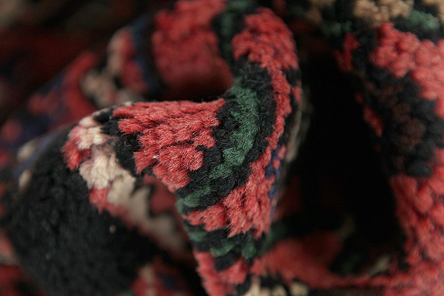Abrash: Due to the different amount of grease in the wool and the added salt during the process of dyeing, the wool has got a varying colour absorbance. This is not very visible before weaving. During the weaving though, lines of the same colour are formed in the carpet. This is called Abrash (which in Farsi means little cloud) and it shows that the wool was not manufactured using chemical means and marks the naturalness and authenticity of the carpets. Examples