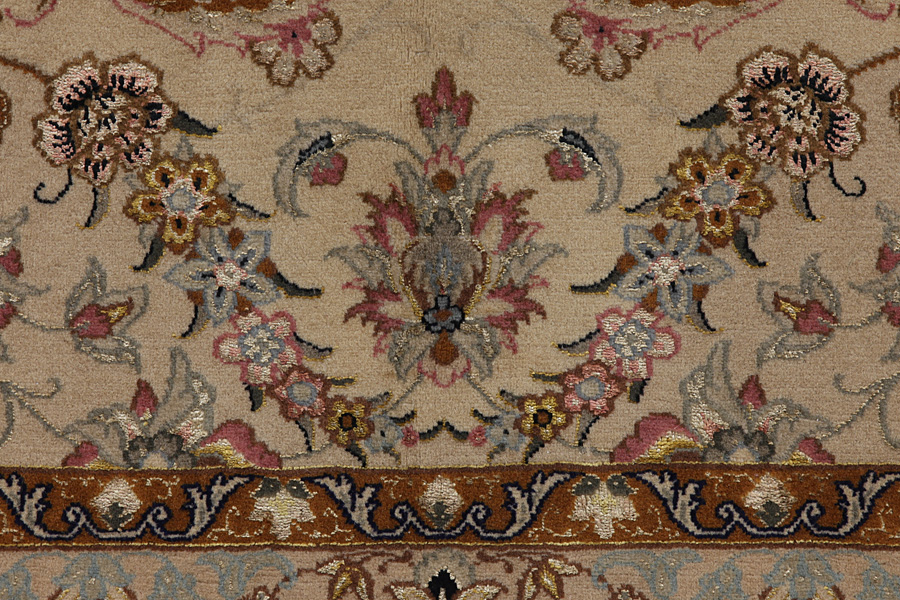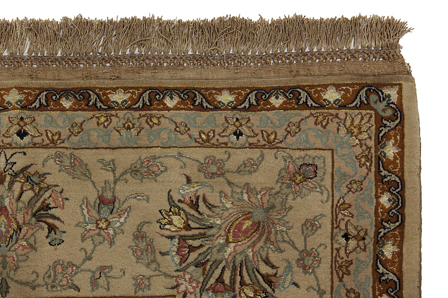 Isfahan Carpets : In the centre of Iran among the Zagros Mountains and the desert, lies the city of Isfahan. Nowadays it is an important industrial city with a population of 1.2 million. The town is an architectural masterpiece. The old carpets of Isfahan in contrast with the newer ones didn't have got a central medallion. The entire surface of the carpet was filled with elaborate spiral flowers and flower palmettes. The newer Isfahan rugs and carpets cannot be compared with those wonderful old specimens which were manufactured exclusively for nobles. But continuing the tradition, today's carpets of Isfahan also have a very fine weave and are clipped very short to reveal their design more clearly. In the weaving they also use silk to highlight certain areas of the design, especially in flowers. The warp is made of silk or cotton.