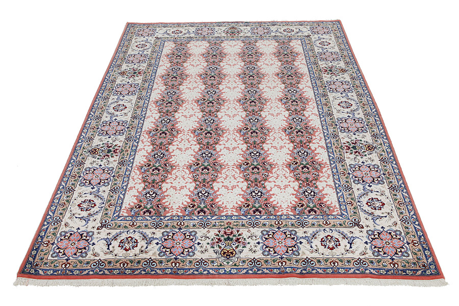 Isfahan Carpets : In the centre of Iran among the Zagros Mountains and the desert, lies the city of Isfahan. Nowadays it is an important industrial city with a population of 1.2 million. The town is an architectural masterpiece. The old carpets of Isfahan in contrast with the newer ones didn't have got a central medallion. The entire surface of the carpet was filled with elaborate spiral flowers and flower palmettes. The newer Isfahan rugs and carpets cannot be compared with those wonderful old specimens which were manufactured exclusively for nobles. But continuing the tradition, today's carpets of Isfahan also have a very fine weave and are clipped very short to reveal their design more clearly. In the weaving they also use silk to highlight certain areas of the design, especially in flowers. The warp is made of silk or cotton.